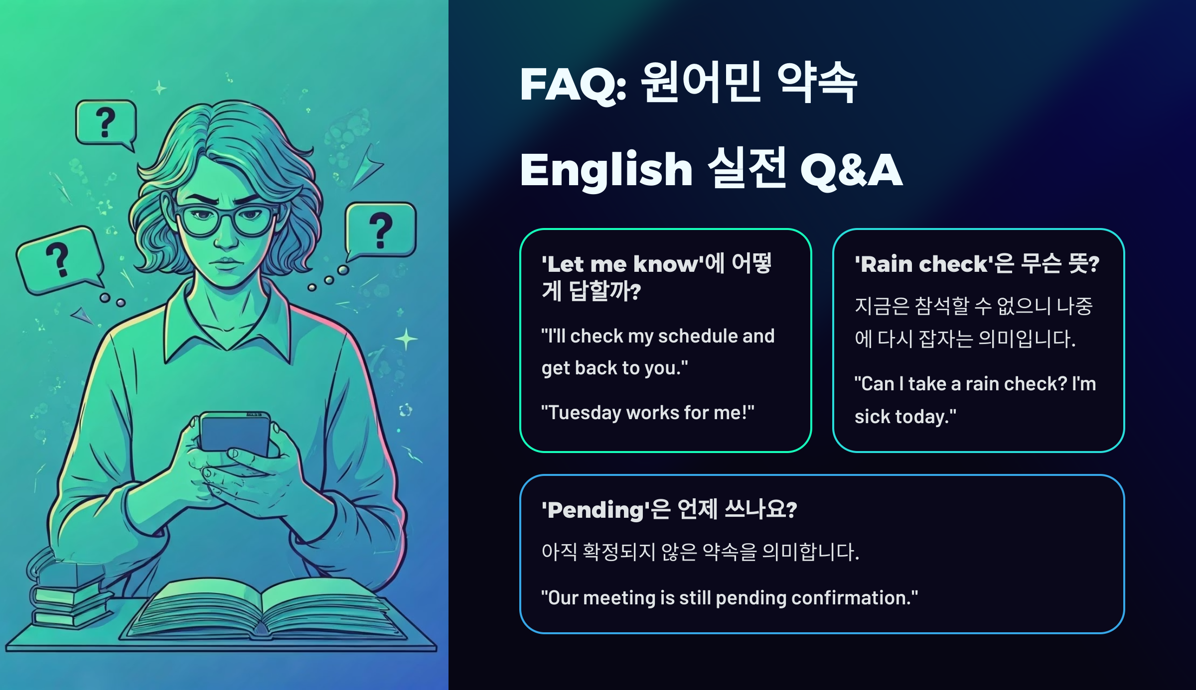 이제 다음은 ❓ FAQ 약속 잡을 때 가장 자주 나오는 영어 표현 질문 8가지, Q&A로 깔끔하게 정리해드릴게요!