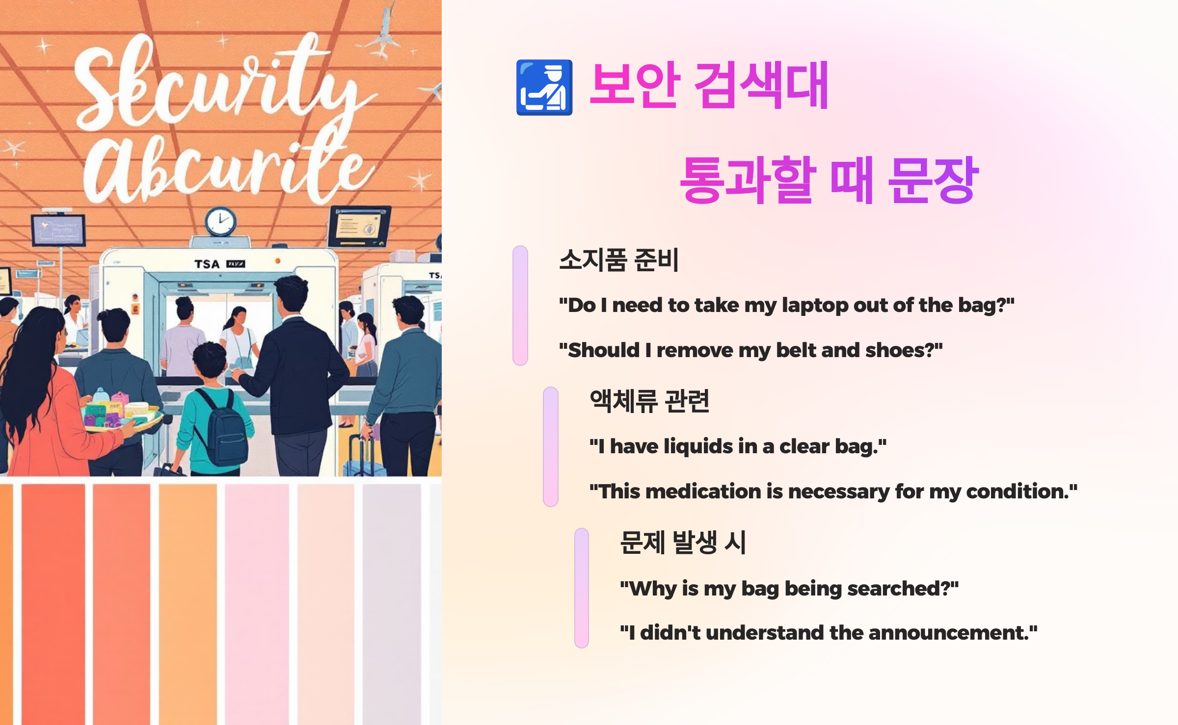 보안 검색은 빠르고 정확하게 응답하는 게 핵심! 준비된 영어 문장으로 당황하지 말고 쿨하게 통과하자구요! 😎