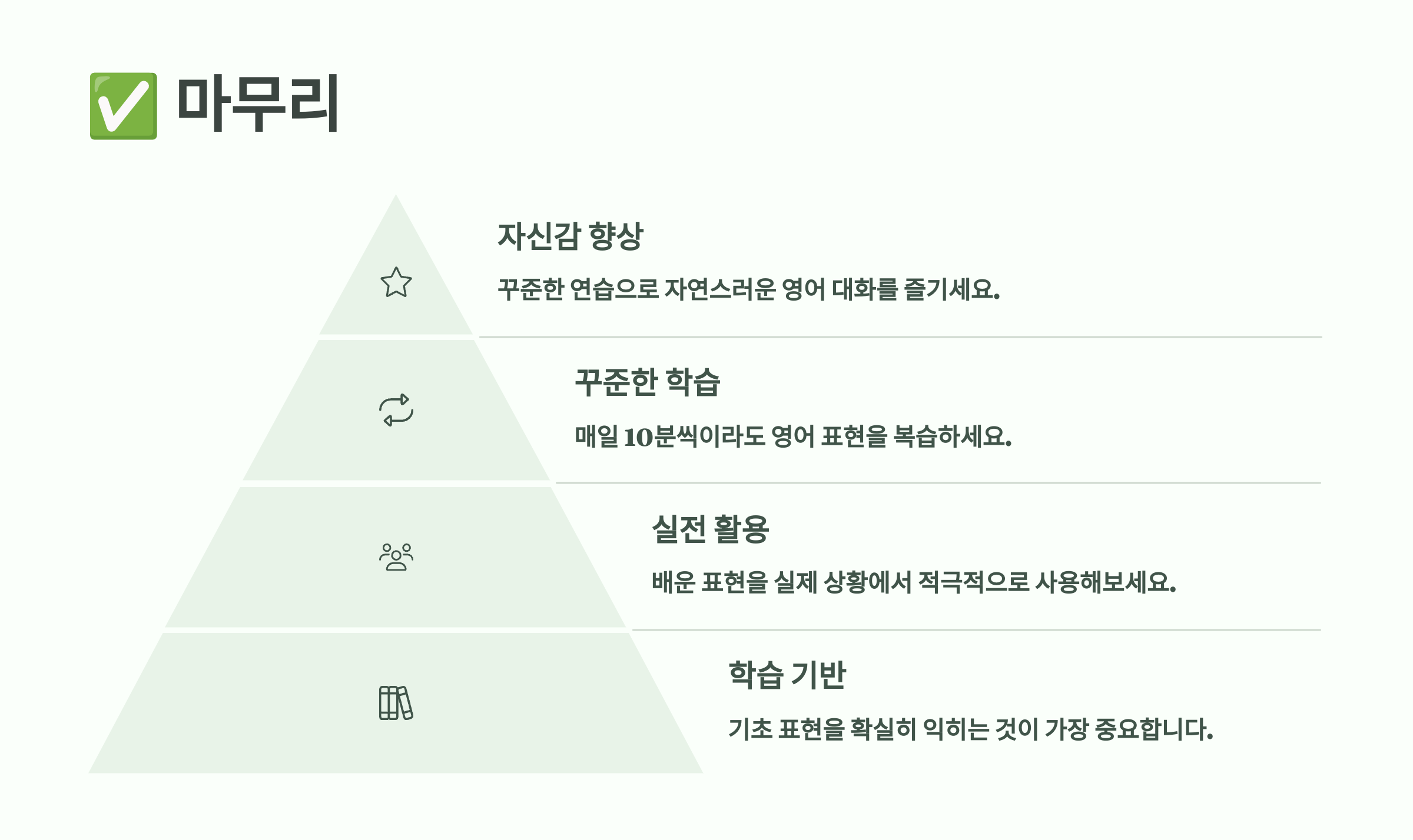 이번 콘텐츠가 도움이 됐다면, 북마크 또는 저장해두고 틈날 때마다 소리 내서 따라 말해보세요.