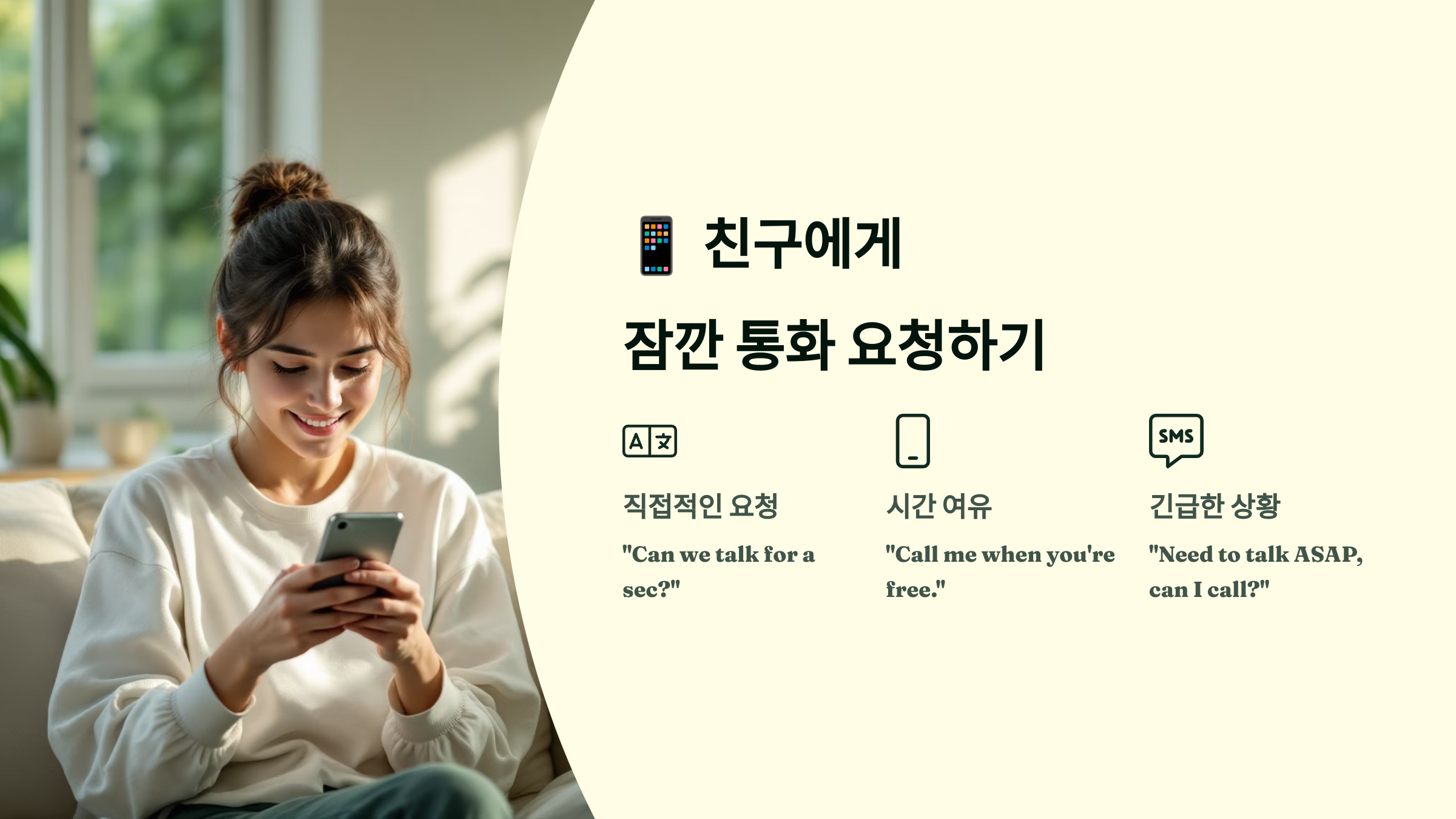 이제 친구에게 조금 더 친밀하게 "잠깐 통화할래?"라고 요청하는 방법을 알아볼게요! 📱