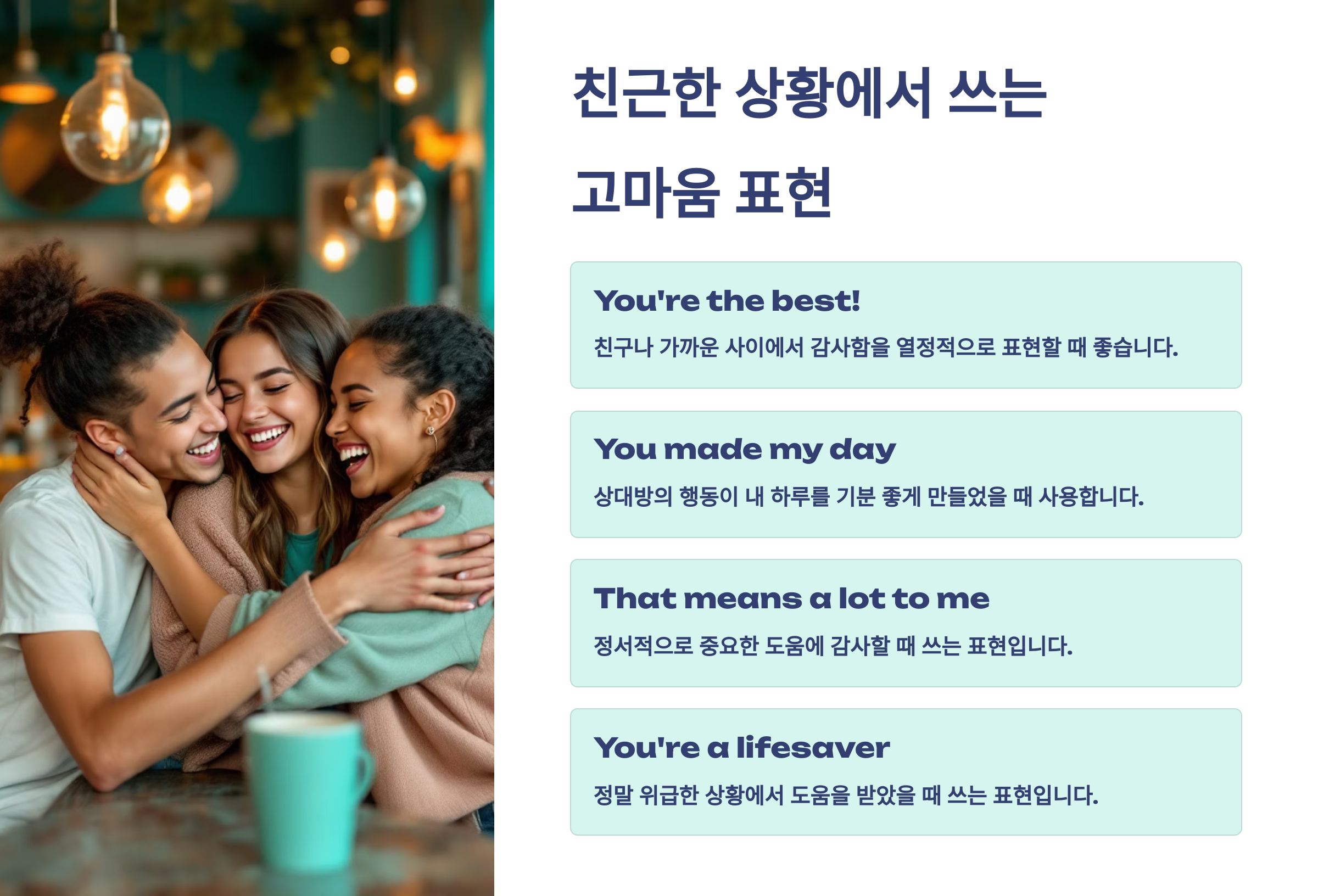 💬 2. 친근한 상황에서 쓰는 고마움 표현