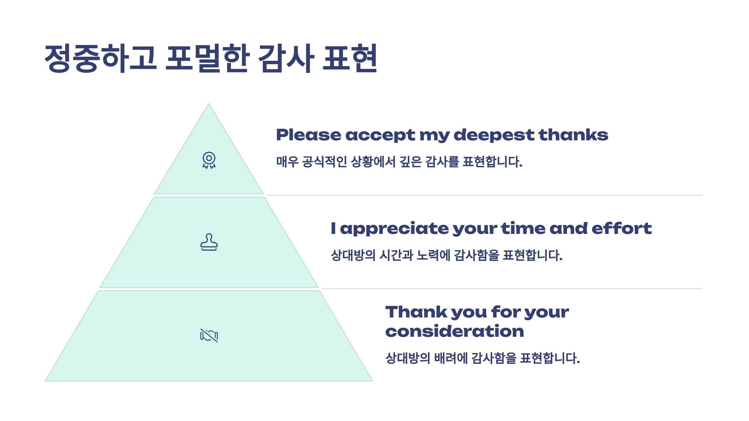 😇 공적인 감사 표현은 전달력은 물론, 전문성과 이미지까지 함께 담겨 있어요. 정중한 감사 표현으로 완성도 있는 커뮤니케이션 해보세요!