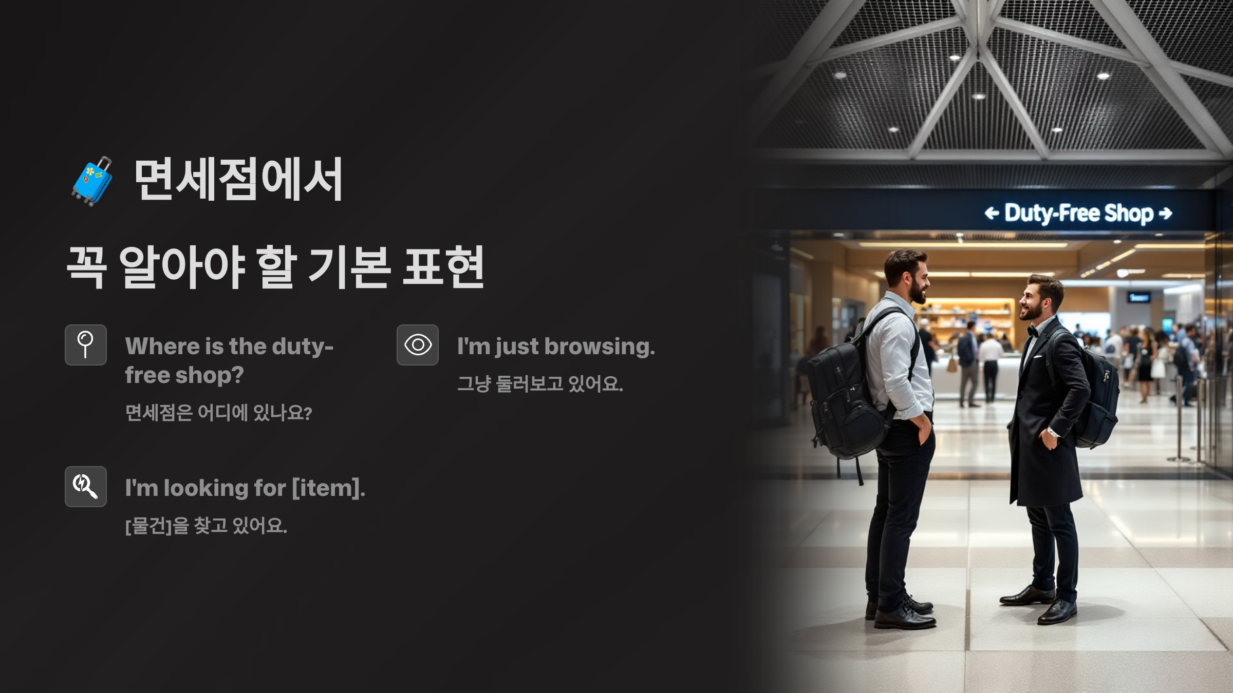 해외여행의 필수 코스 중 하나인 면세점 쇼핑! 🛫👜 하지만 계산할 때, 직원에게 물어볼 때, 환불 요청할 때 등 다양한 상황에서 영어 표현이 막막했던 경험 있지 않으셨나요?